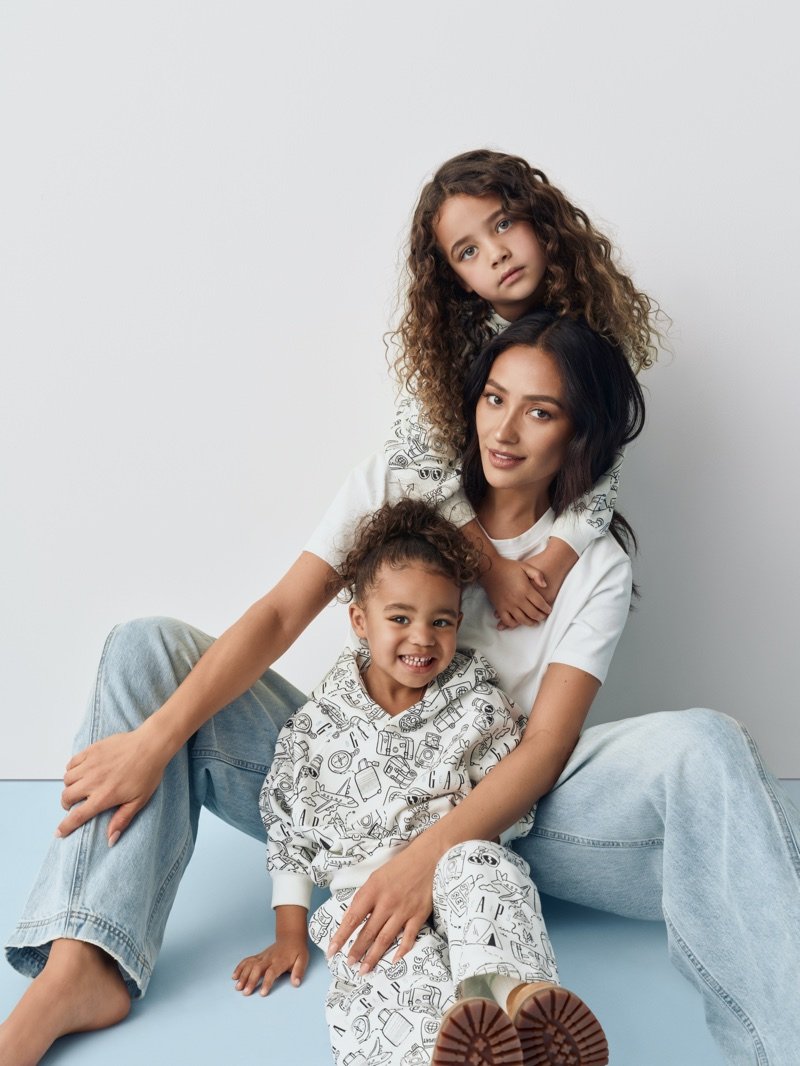 Photographed alongside her two children, Shay showcases not just the pieces but the lifestyle they’re built for. Her kids even appear in mini versions of the cozy travel outfits, proving that the collection has family at its core. It’s a nod to how travel has shifted for so many: it’s not just about jetsetting anymore, it’s about making the journey enjoyable for everyone involved.